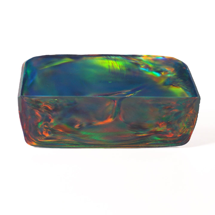 Nebula Opal™ is not natural opal. Nebula Opal™ is a colloidal resin opal engineered with ordered silica microspheres to produce vibrant, non-directional play-of-color. Nebula Opal™ is manufactured for consistency, color control, and fabrication performance rather than geological rarity.