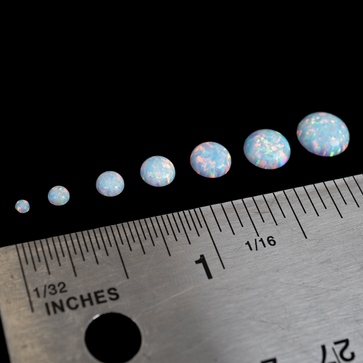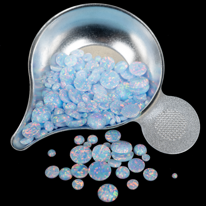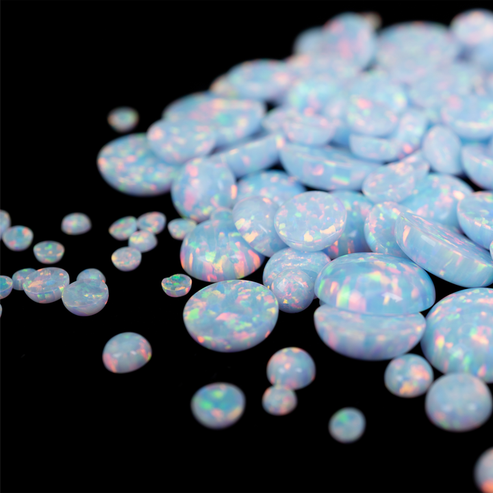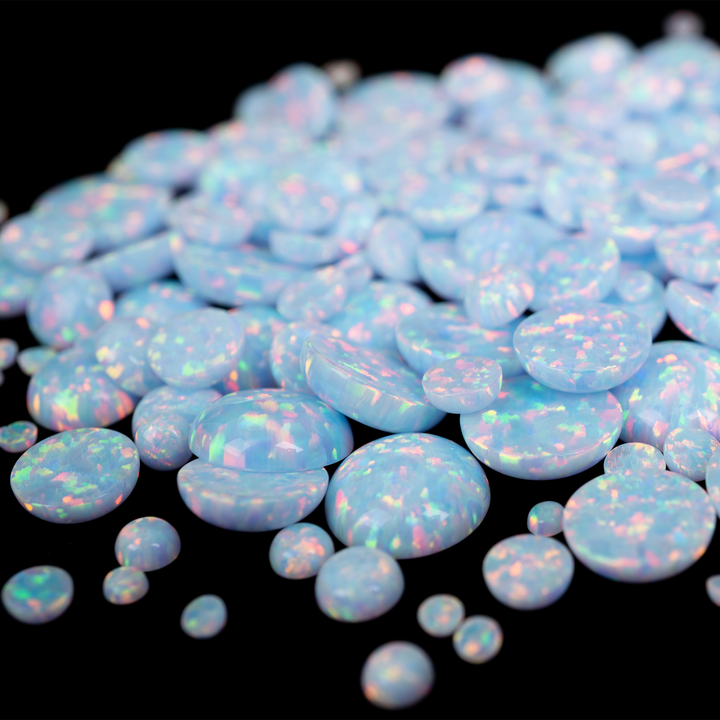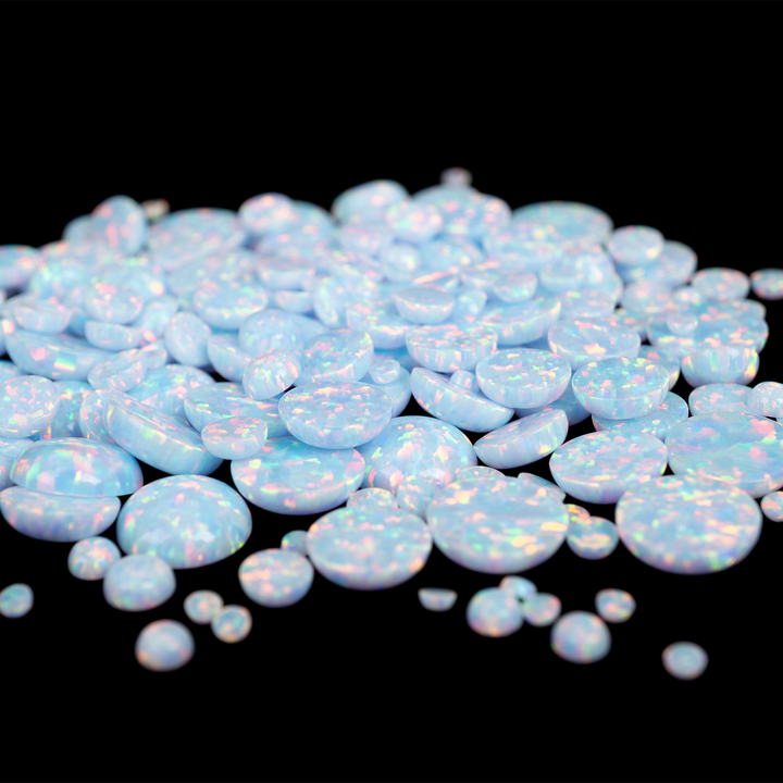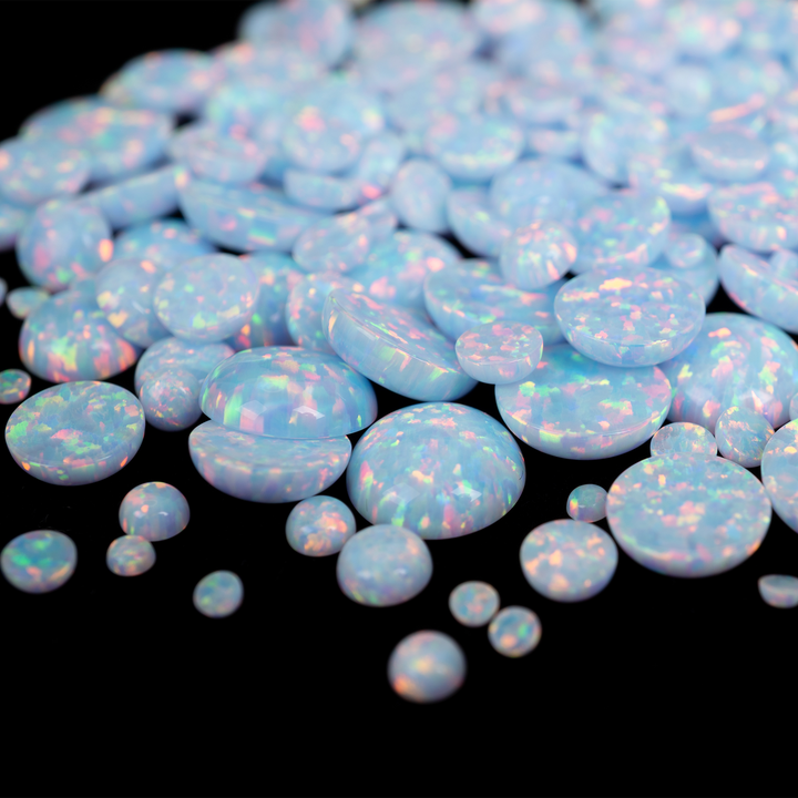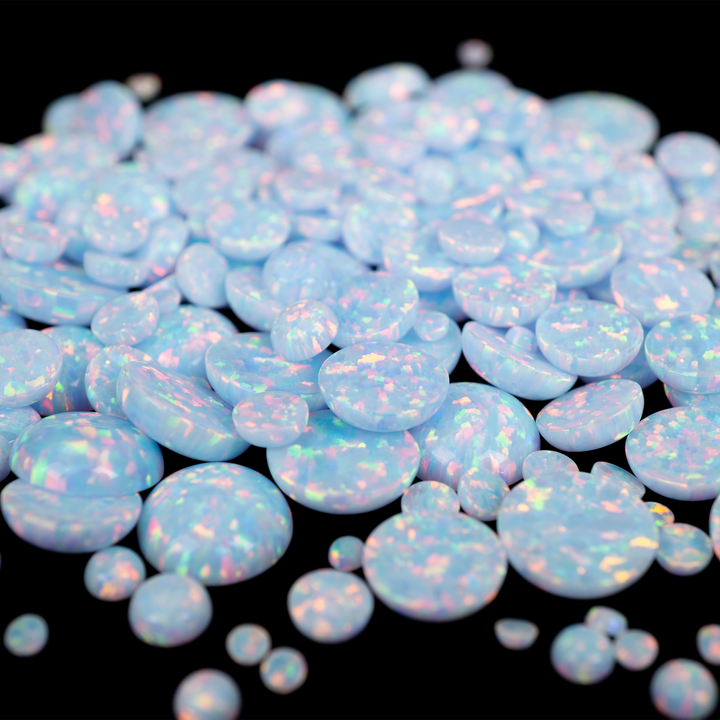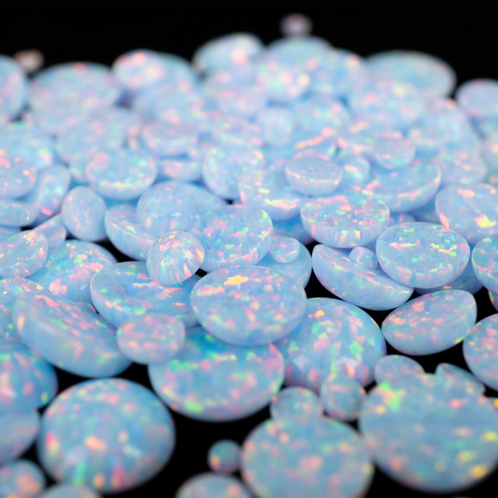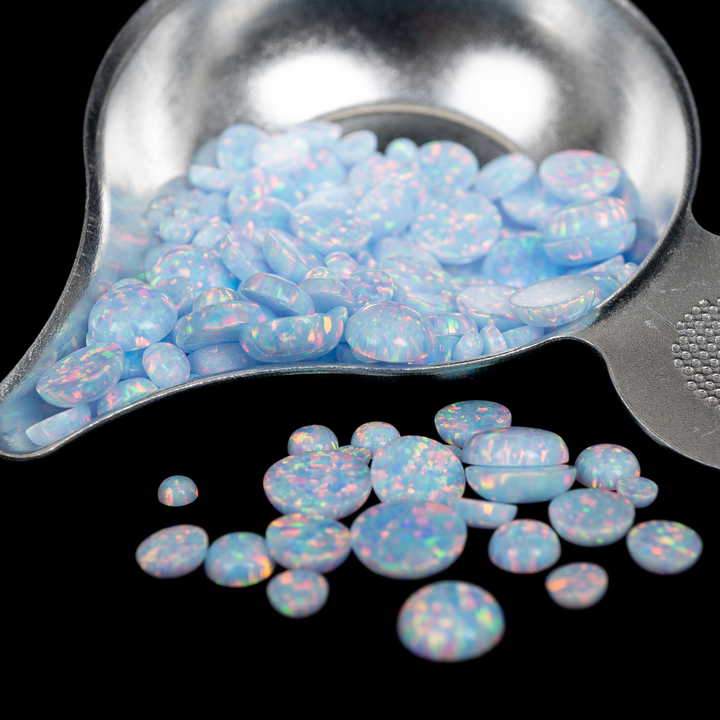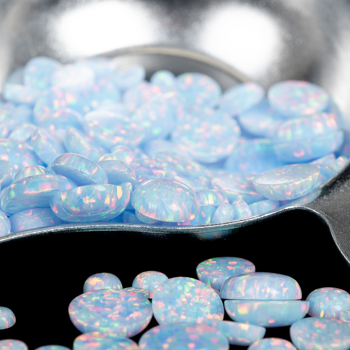Capture the cool, quiet beauty of a winter storm with our Blizzard Opal Cabochons. This enchanting lab-created opal features a delicate, frosty pastel blue base that glitters with a magical flurry of rainbow fire. A serene and beautiful choice for your jewelry making supplies, these synthetic opal cabochons will bring a touch of winter magic to any design, perfect for creating pieces that are both elegant and unique.