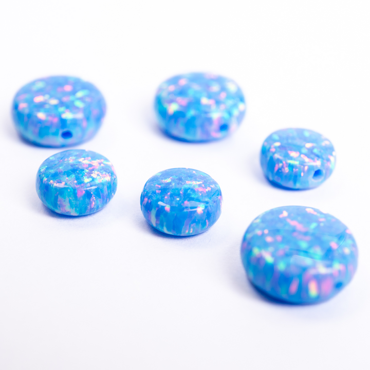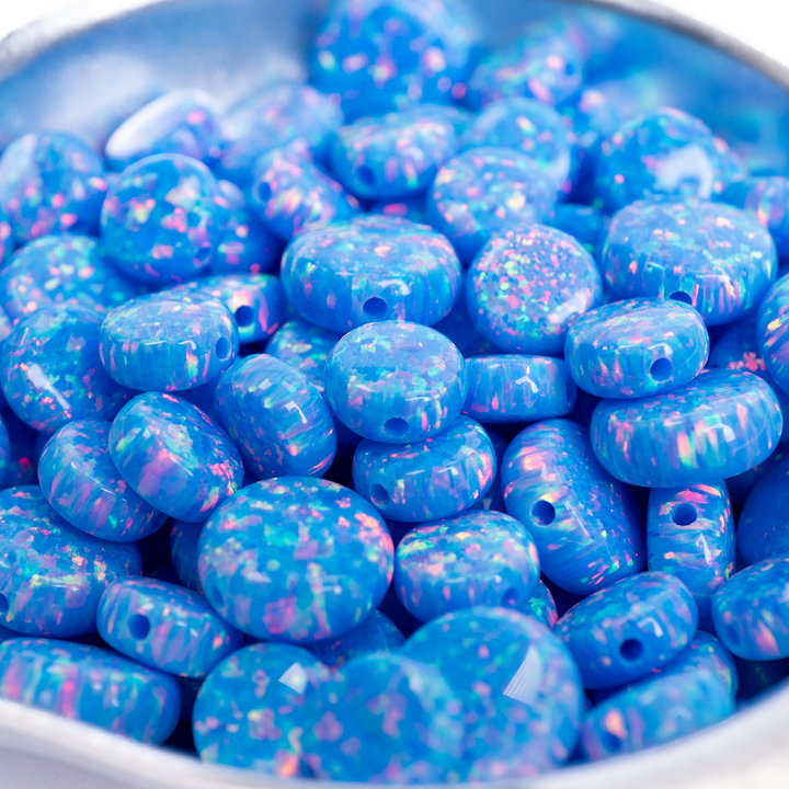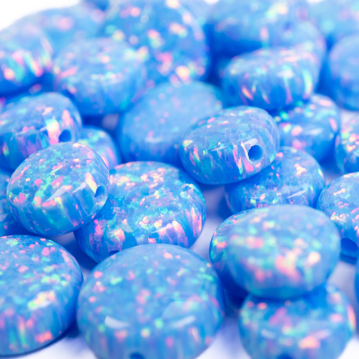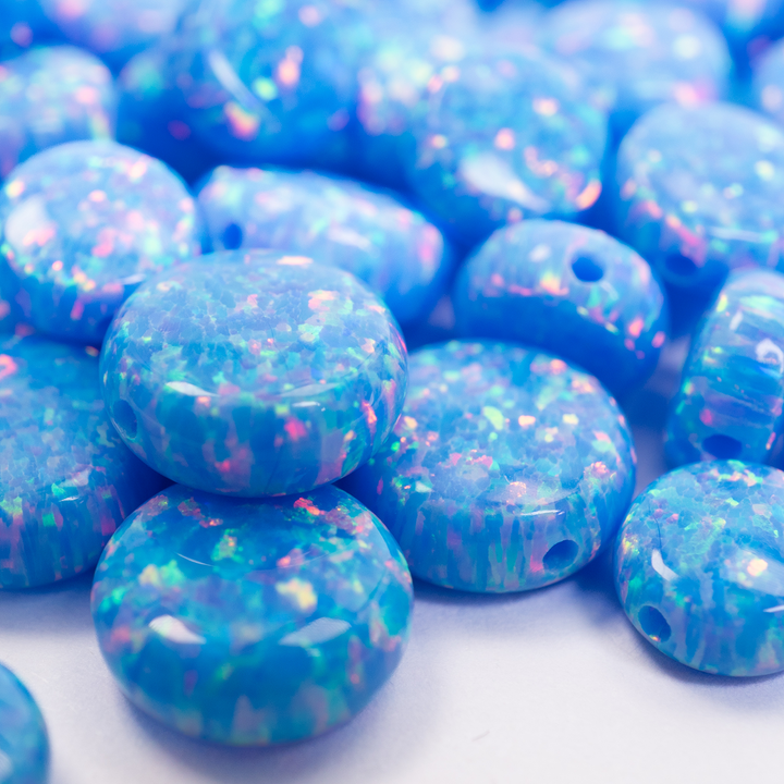 Indulge your sweet tooth with our delightful Cotton Candy Opal Puff Coin Beads. This enchanting lab-created opal captures the playful, sugary essence of a carnival treat. It features a bold blue base that swirls with vibrant flashes of pink and hints of green fire. The modern, gently curved coin shape provides a broad canvas for the vibrant colors to dance across, making it a whimsical choice for your jewelry making supplies and a joyful touch to any project.