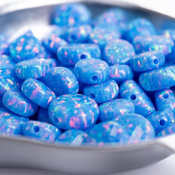 Please Note: Our lab-created opals can withstand heat up to approximately 250°F. For best results and to maintain the integrity of your beads, please avoid exposing them to high heat. Due to their unique composition, every bead is unique and color may vary.