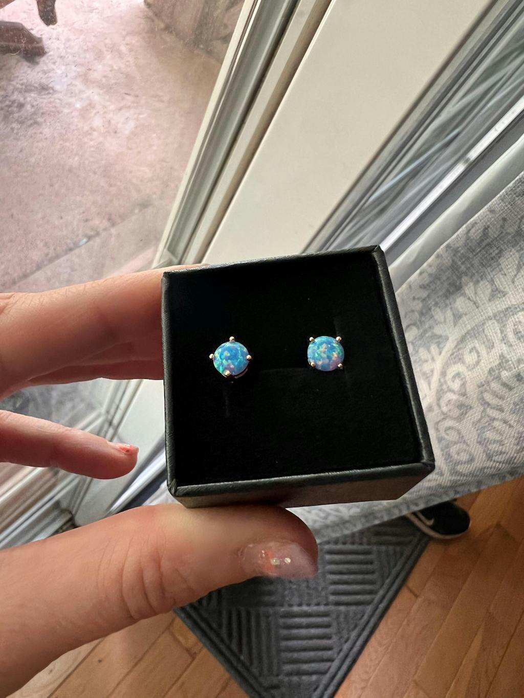 | Material | Synthetic Faceted Astral Opal™ (Silica & Polymer) & 925 Sterling Silver Studs with Plating |