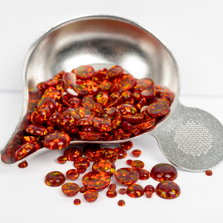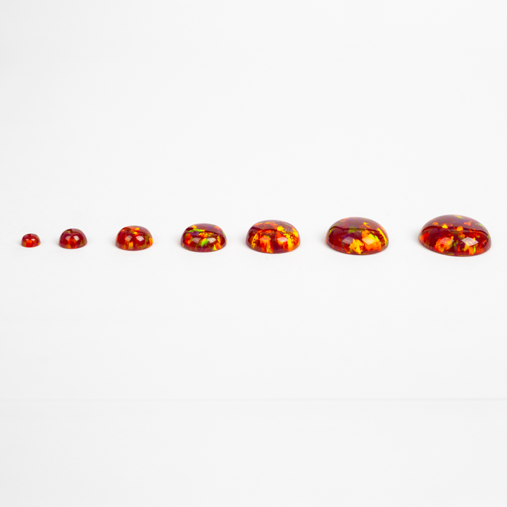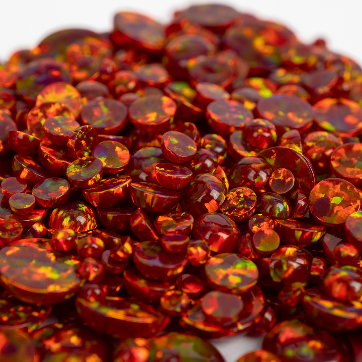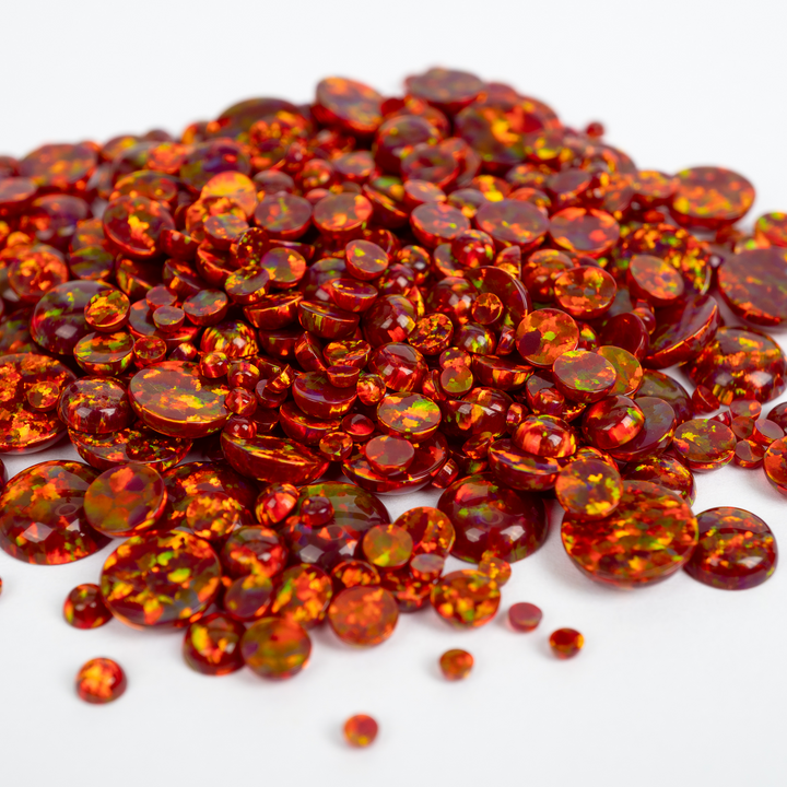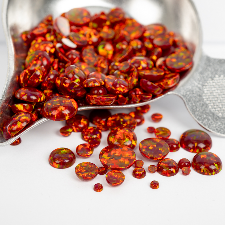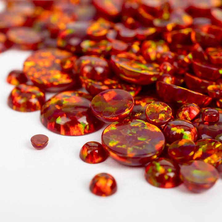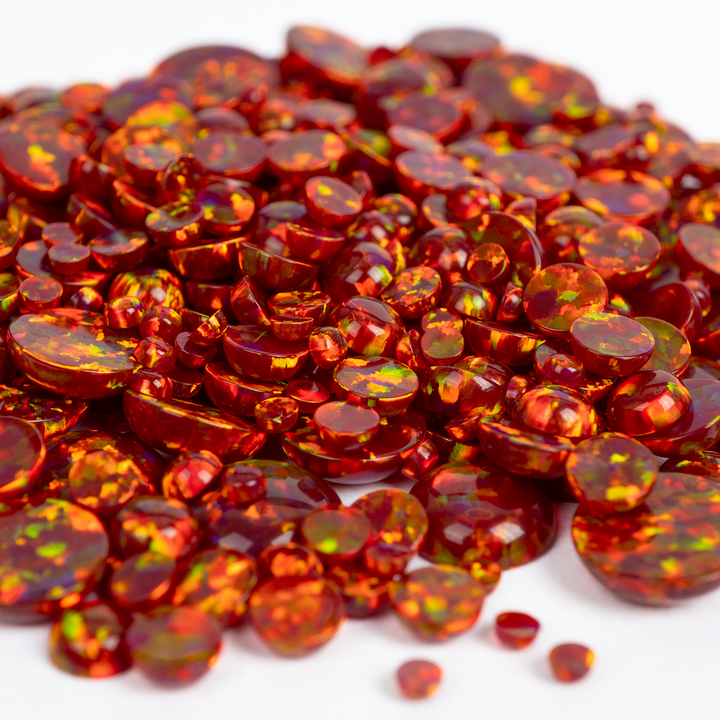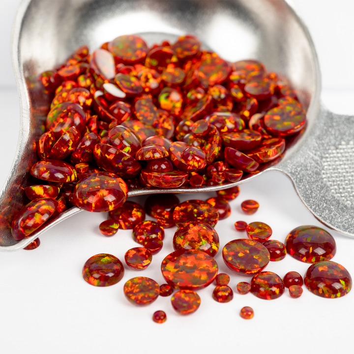 Ignite your creativity with the intense glow of our Crimson Fire Opal Cabochons. This stunning lab-created opal is born from the heart of a volcano, featuring a deep, smoldering crimson base that erupts with a full spectrum of rainbow fire. A bold and passionate choice for your collection of jewelry making supplies, these synthetic opal cabochons bring a luxurious, fiery energy to any design, from statement necklaces to a captivating ring.