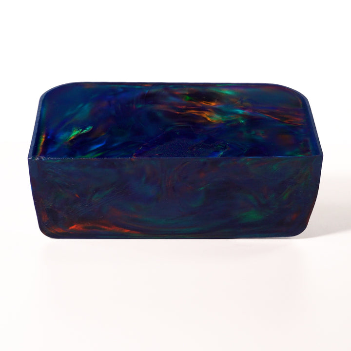 Nebula Opal™ uses the same colloidal resin manufacturing method associated with Aurora Opal, but Nebula Opal™ is produced with tighter quality control, a larger half-block format, reduced visible internal lines, and expanded color development. Nebula Opal™ is designed to deliver cleaner slabs and more predictable cutting yield.