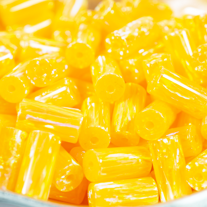 Bring a taste of the tropics to your projects with our Golden Pineapple Opal Tube Beads. These vibrant lab-created opal beads feature a modern cylinder shape, perfect for summer-themed designs. Each 4x8mm bead is made of genuine synthetic opal, filled with a juicy, golden-yellow hue that shimmers with an exotic twist of yellow and green fire. This cheerful shape is a fun choice for beaded jewelry, including tropical necklaces and fun bracelets. Add this slice of paradise to your collection of jewelry making supplies.