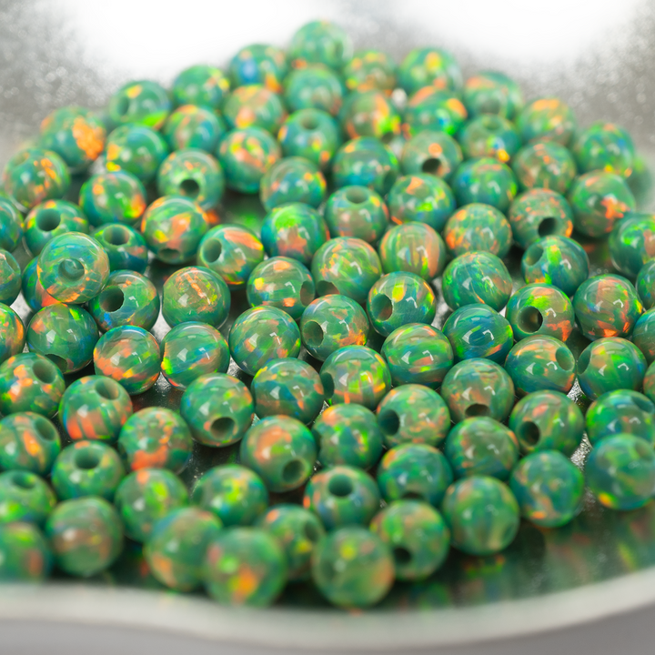 Please Note: Our lab-created opals can withstand heat up to approximately 250°F. For best results and to maintain the integrity of your beads, please avoid exposing them to high heat. Due to their unique composition, every bead is unique and color may vary.