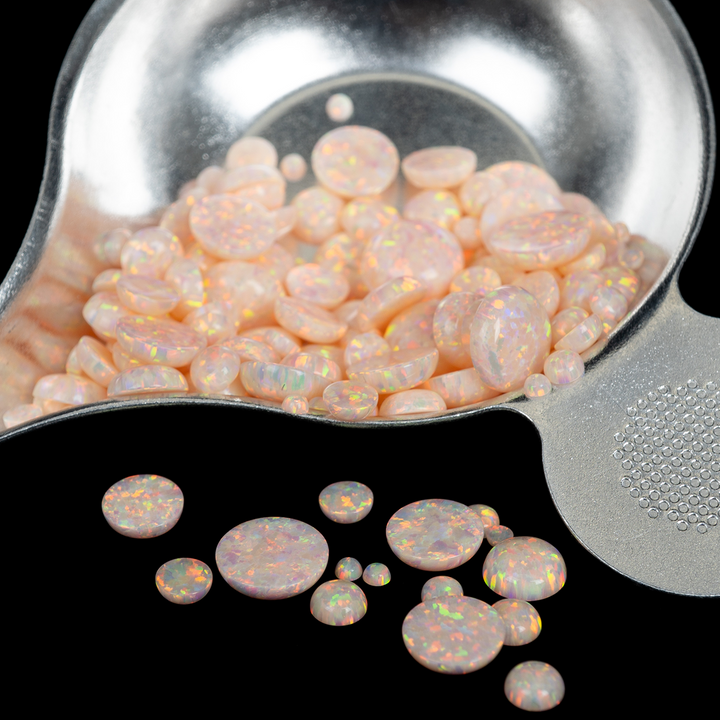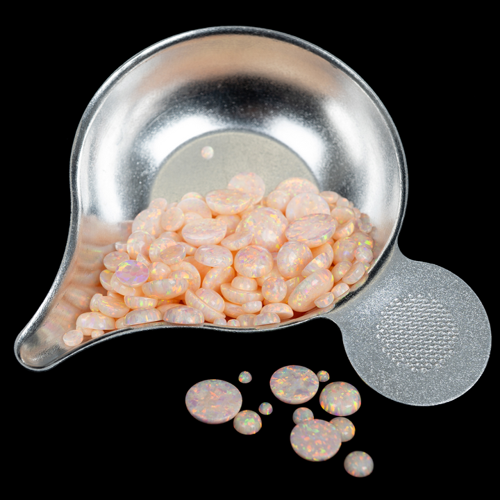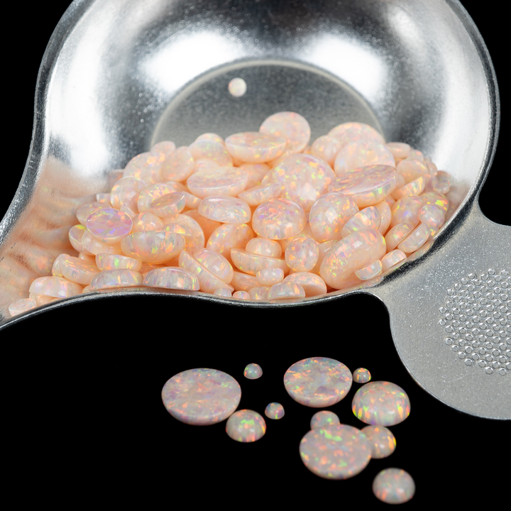 Embrace the gentle warmth of our Peach Fuzz Opal Cabochons. Inspired by the comforting color of the year, these beautiful lab-created opal beads feature a soft, velvety pastel peach base. Each bead is filled with an ethereal shimmer, casting a soft glow with a delicate rainbow fire. A nurturing and elegant choice for your collection of jewelry making supplies, these synthetic opal cabochons will bring a touch of gentle sophistication and heartfelt kindness to your designs.