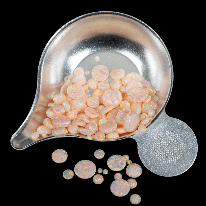 Lab-grown opal provides a brilliant and ethical alternative to mined opal. It offers not only affordability but also enhanced durability for creative projects. Unlike natural opal, which can be prone to cracking or crazing, our opal is stabilized with a polymer. This special impregnation process makes the material much stronger and easier to work with, perfect for jewelry, ring making, and other crafts. Please note, because of this polymer stabilization, the material cannot be exposed to the high heat of activities like glassblowing.