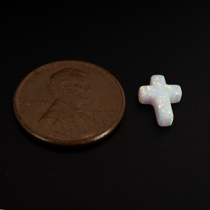 Dive into a world of elegance with our Pearl White Opal Cross Charms. These exquisite lab-created opal beads are inspired by the glistening pearl birthstone, capturing its timeless beauty and grace. Each charm features a pristine white base that is complexly layered with brilliant flashes of rainbow fire. A truly mesmerizing and classic choice for your collection of jewelry making supplies, these synthetic opal beads will bring a new level of brilliance and sophistication to your craft projects.