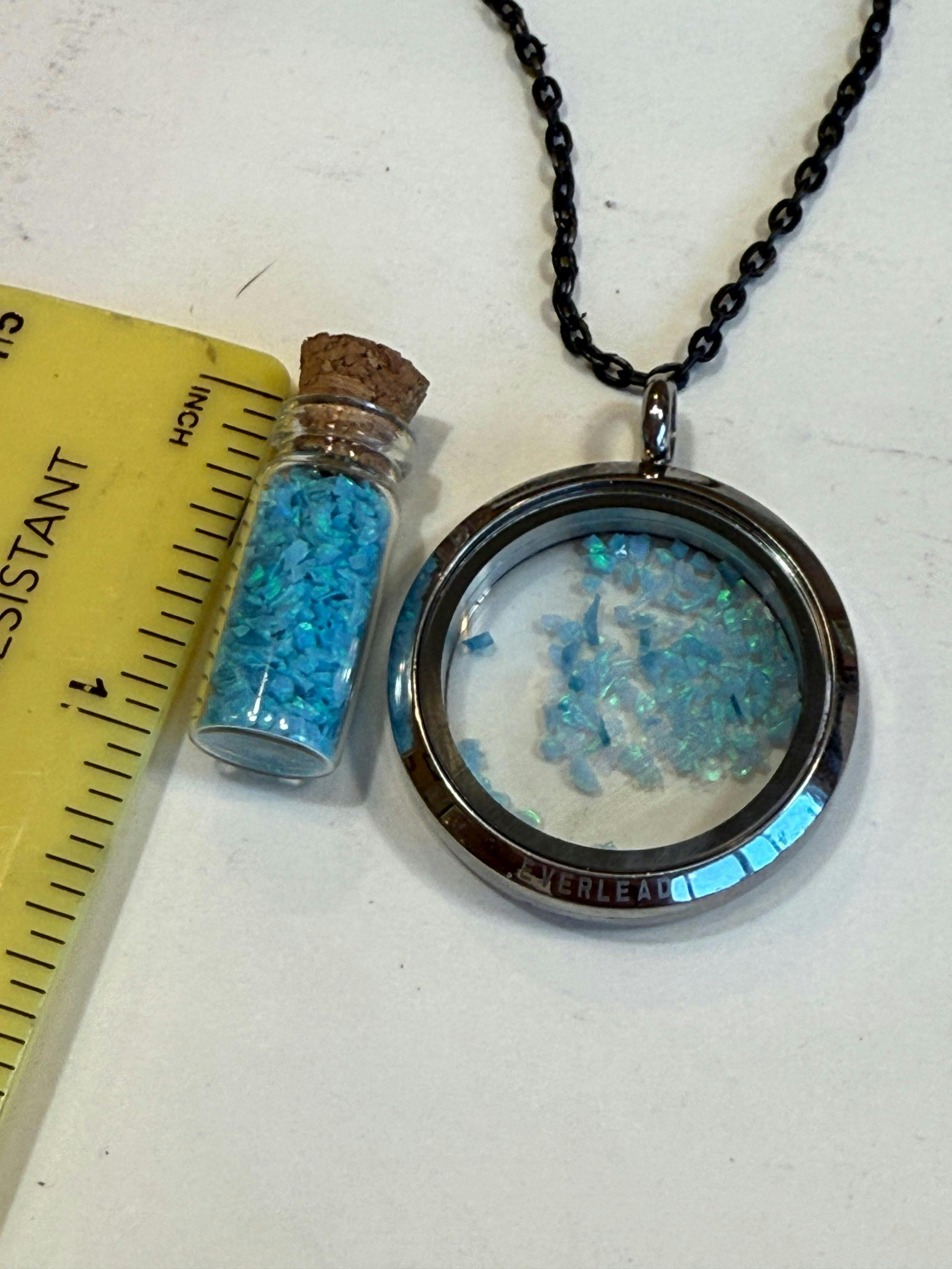 Material Type: Lab Created Turquoise Crushed Opal & Glass Vial with Cork