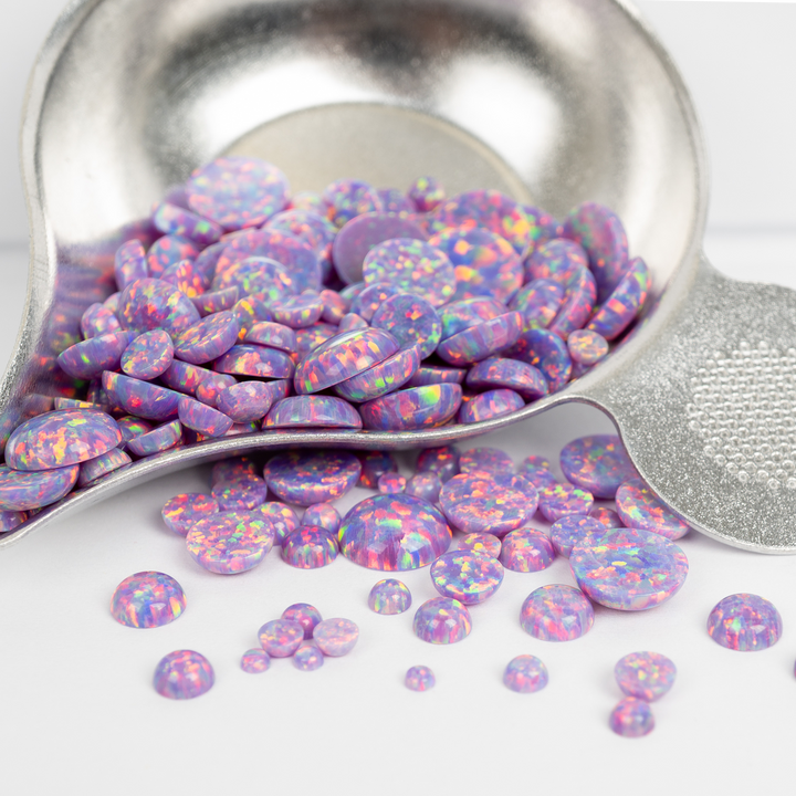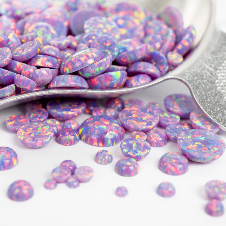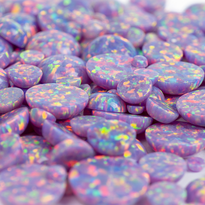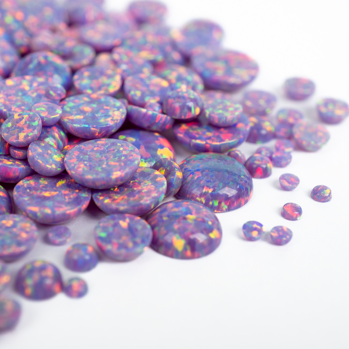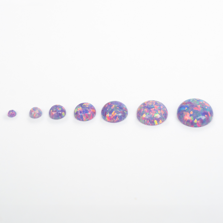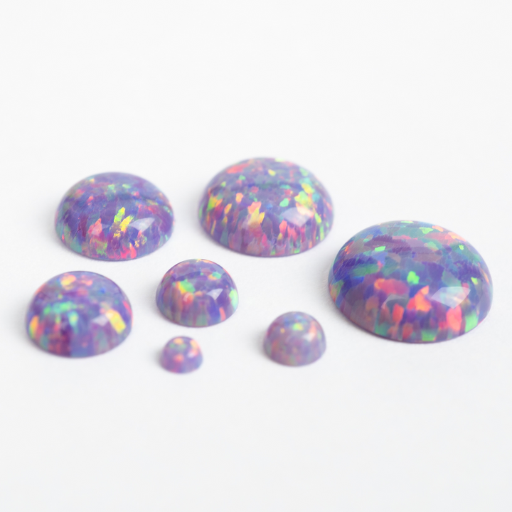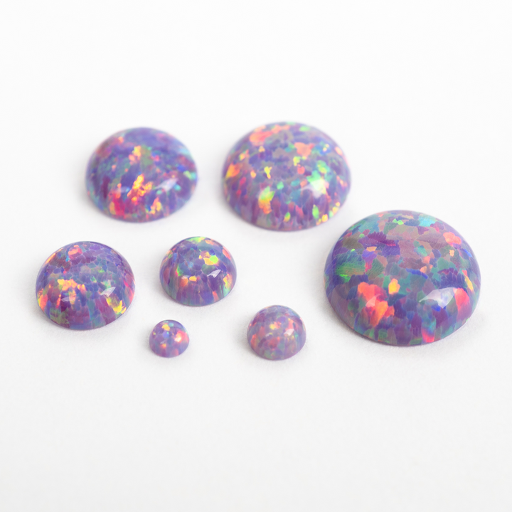 Embrace the extraordinary with our Ultra Violet Opal Cabochons. These spectacular lab-created opal stones appear to have mutated into an illuminated light the human eye can't quite believe. Each bead features a pastel yet vibrant purple base that bursts with a mesmerizing rainbow fire. An otherworldly and captivating choice for your collection of jewelry making supplies, these synthetic opal beads will bring a touch of cosmic brilliance to your next project.