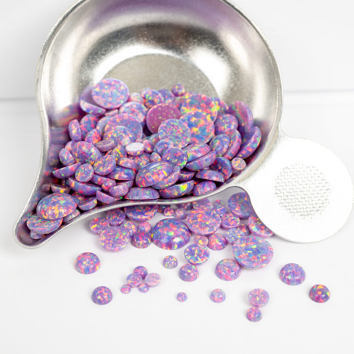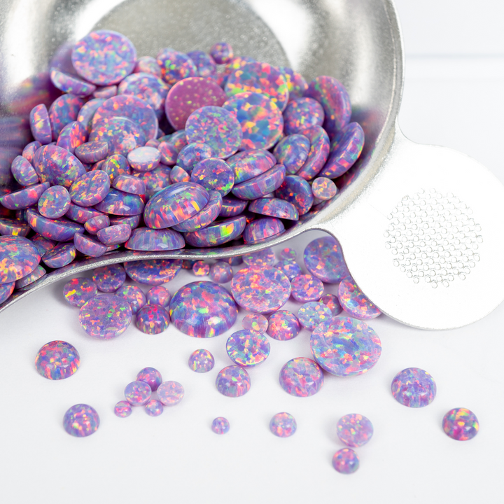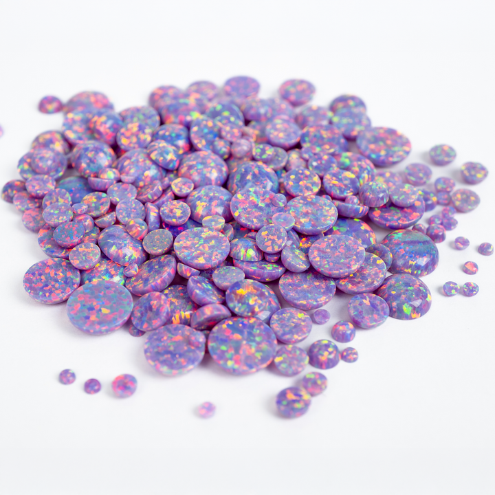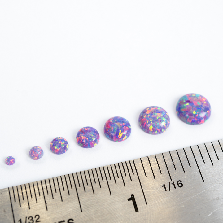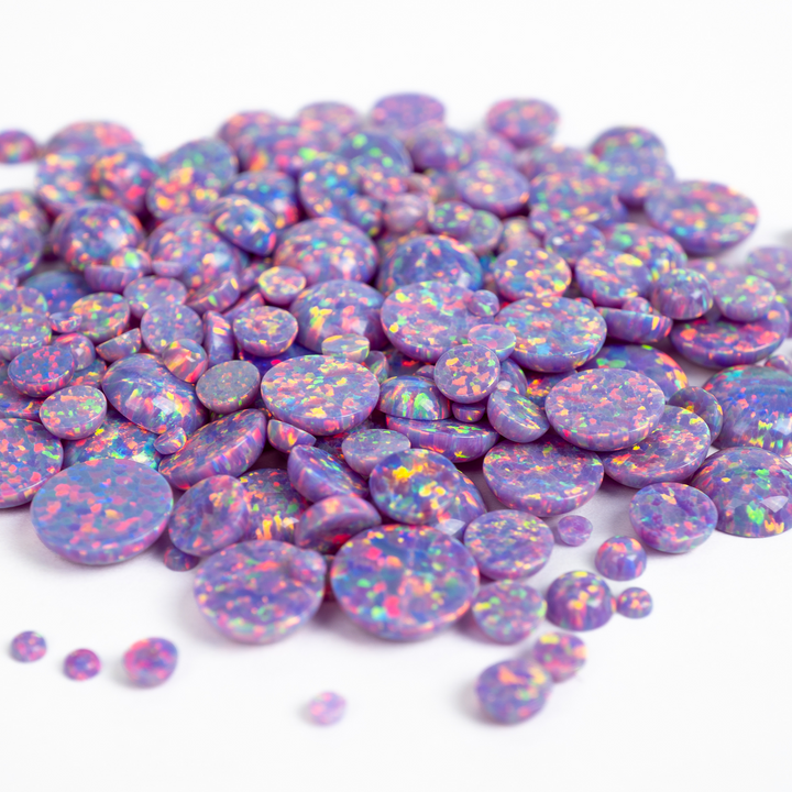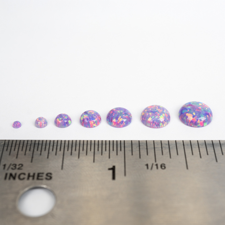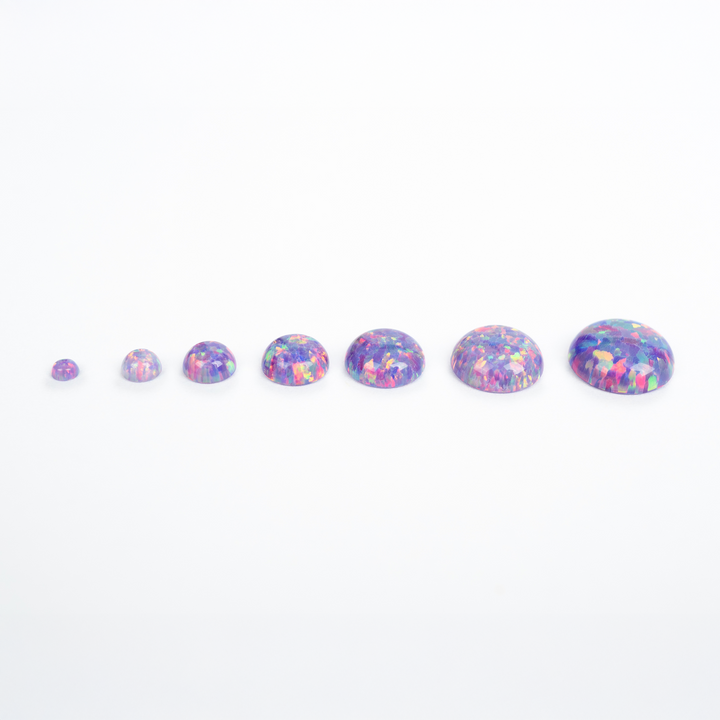 Embrace the extraordinary with our Ultra Violet Opal Cabochons. These spectacular lab-created opal stones appear to have mutated into an illuminated light the human eye can't quite believe. Each bead features a pastel yet vibrant purple base that bursts with a mesmerizing rainbow fire. An otherworldly and captivating choice for your collection of jewelry making supplies, these synthetic opal beads will bring a touch of cosmic brilliance to your next project.