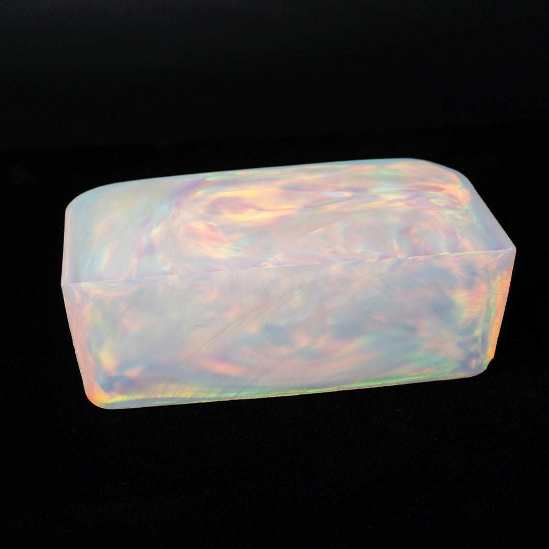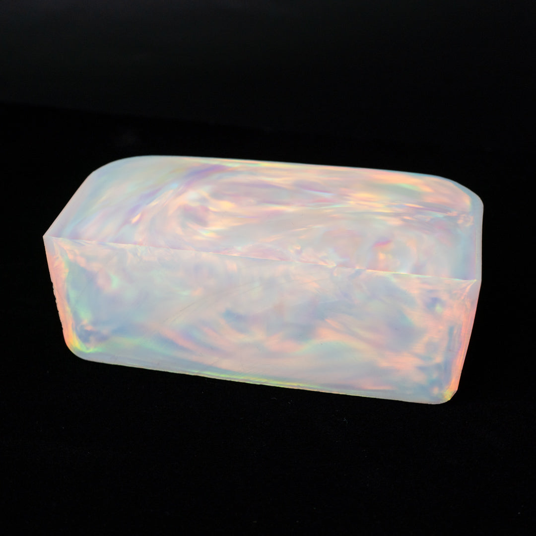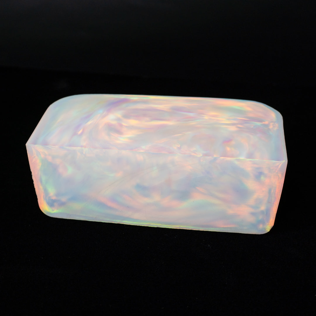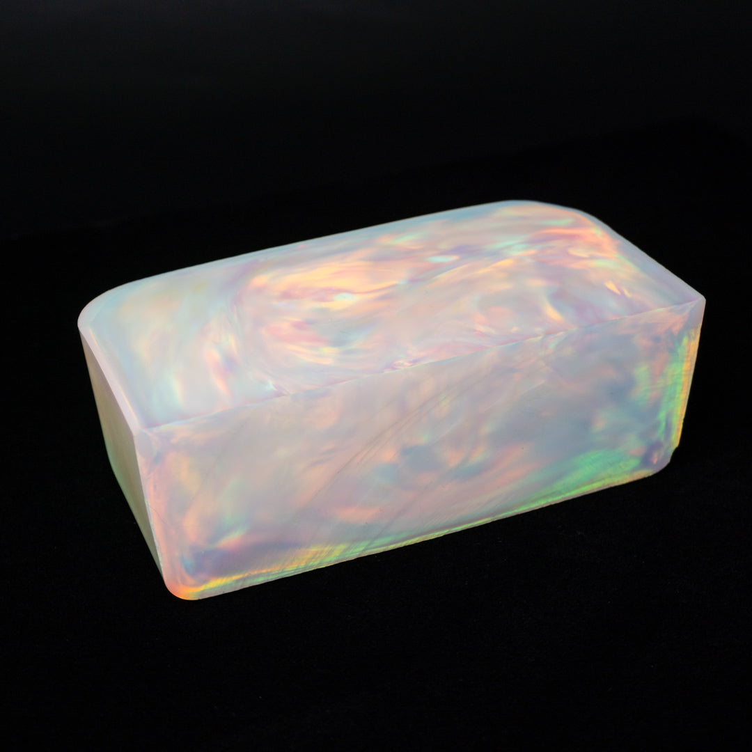 Capture pure cosmic magic with our dazzling White Rainbow Nebula Opal™ Rough Block. Like a fluffy white cloud colliding with celestial rainbows across the infinite cosmos, this premium Lab-Crafted™ imitation opal features a powdery white base with magnificent bursts of rainbow fire. With swirling patterns reminiscent of an aurora dancing through pristine starlight, this radiant and luminous material is a perfect choice for lapidary and jewelry making supplies. Each resin-based imitation opal rough brings brilliant possibility to cutting, carving, or inlay projects.