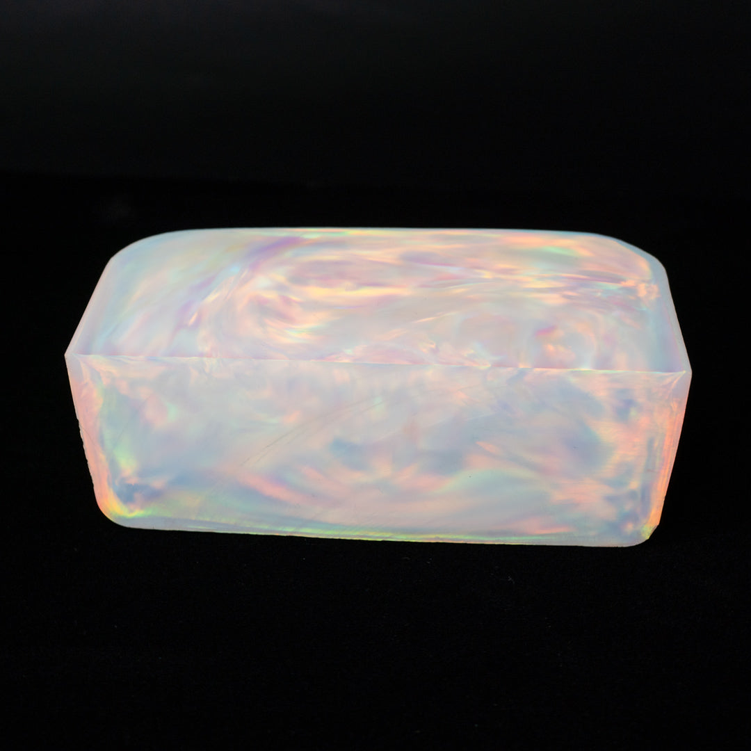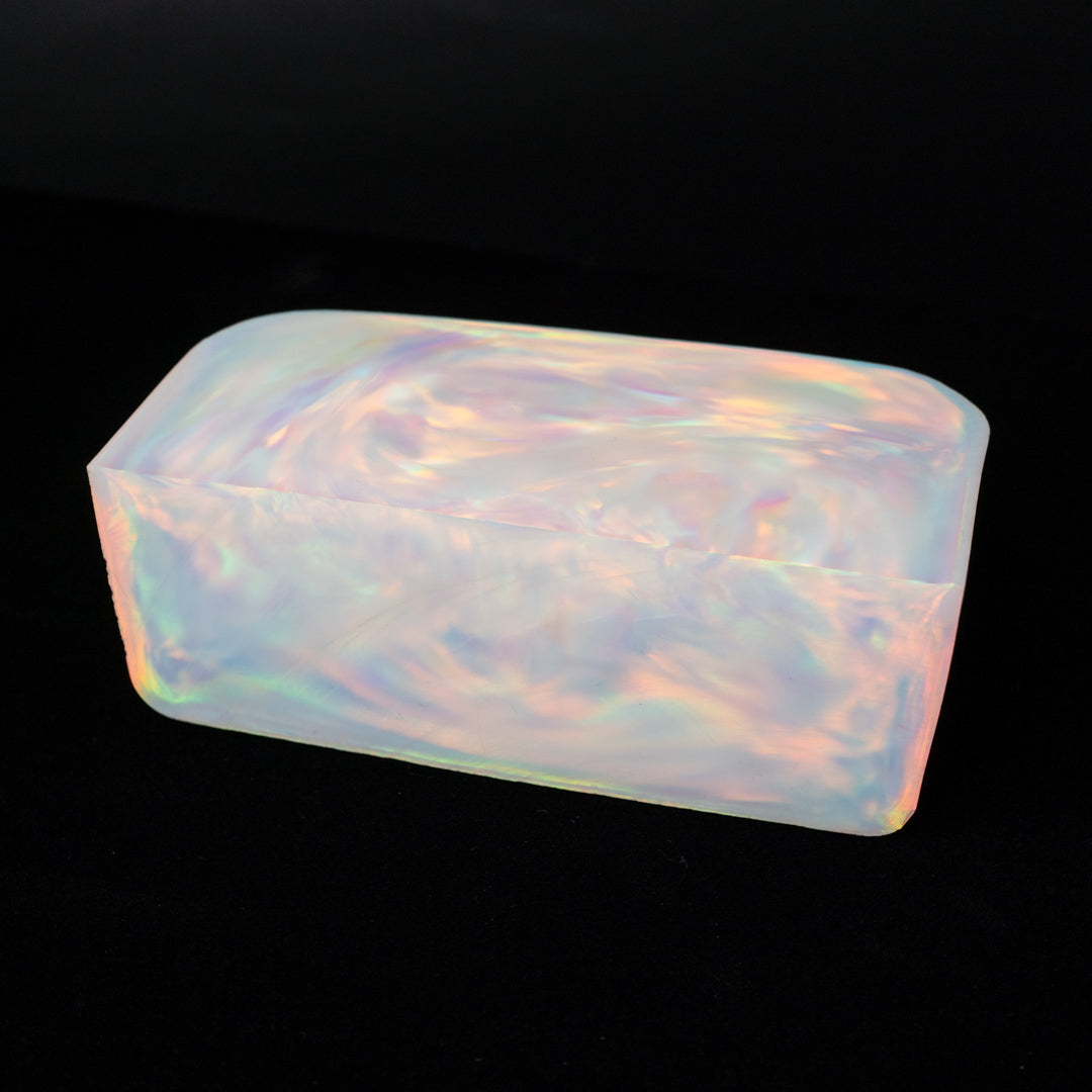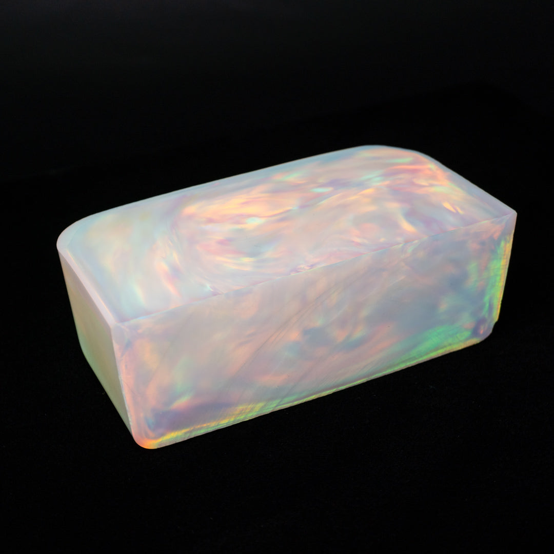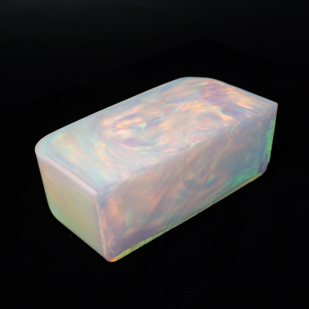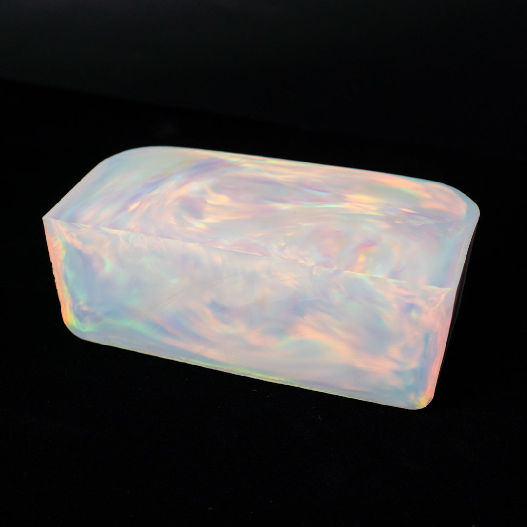Capture pure cosmic magic with our dazzling White Rainbow Nebula Opal™ Rough Block. Like a fluffy white cloud colliding with celestial rainbows across the infinite cosmos, this premium Lab-Crafted™ imitation opal features a powdery white base with magnificent bursts of rainbow fire. With swirling patterns reminiscent of an aurora dancing through pristine starlight, this radiant and luminous material is a perfect choice for lapidary and jewelry making supplies. Each resin-based imitation opal rough brings brilliant possibility to cutting, carving, or inlay projects.