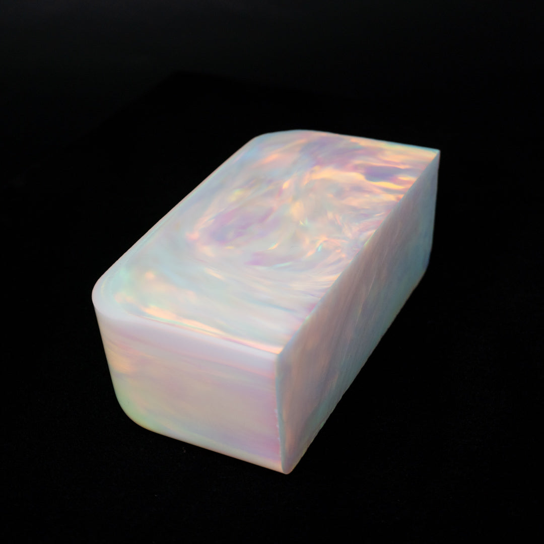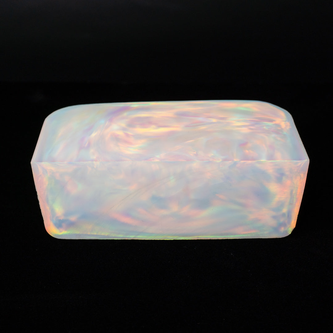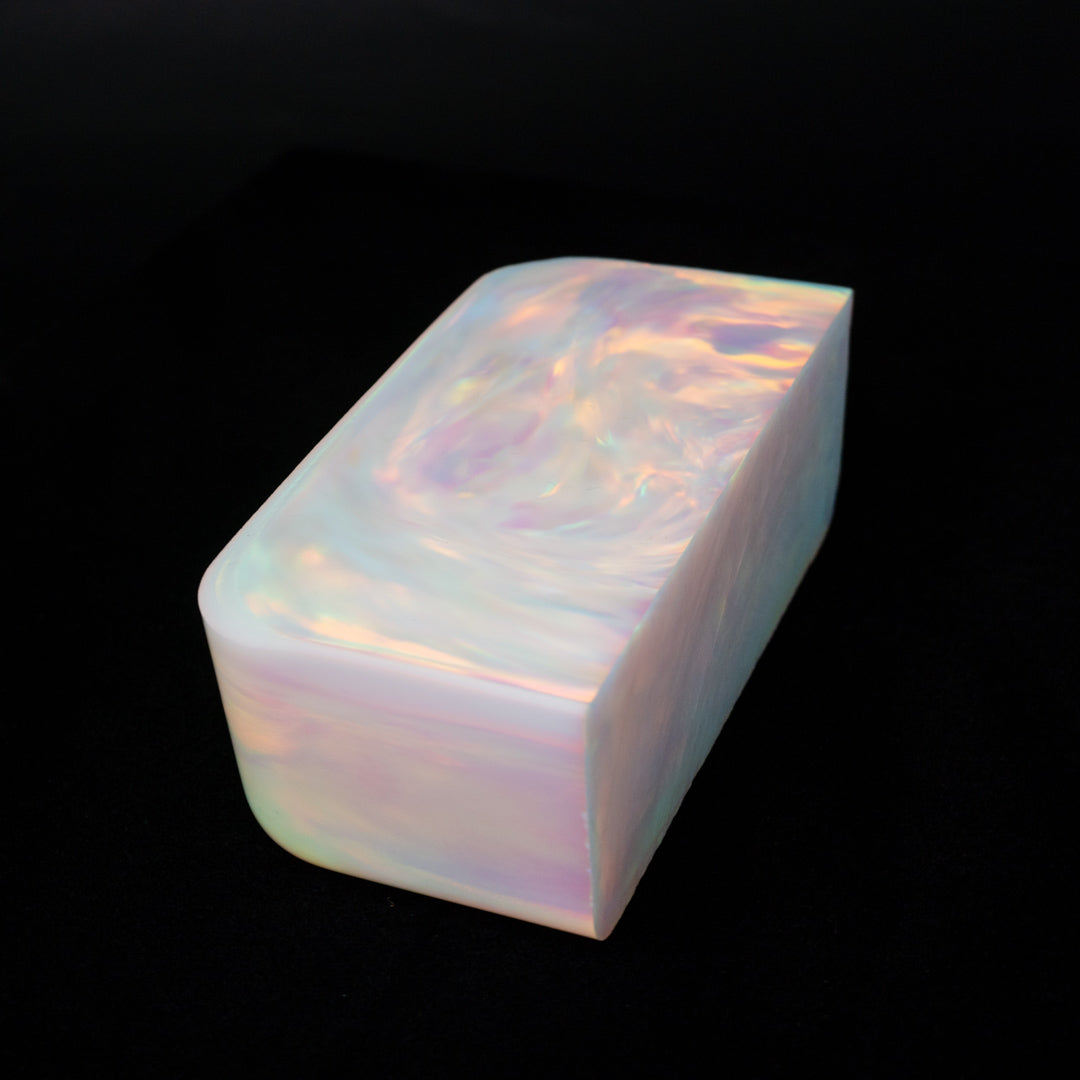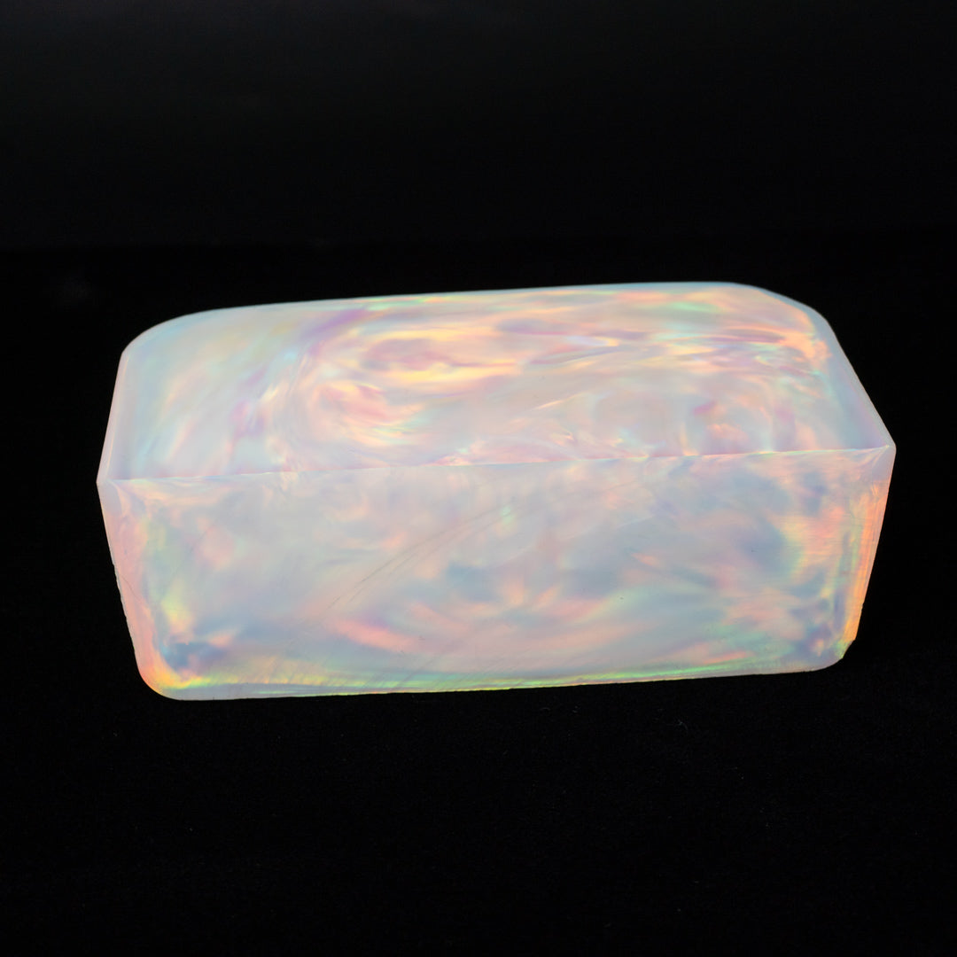 Capture pure cosmic magic with our dazzling White Rainbow Nebula Opal™ Rough Block. Like a fluffy white cloud colliding with celestial rainbows across the infinite cosmos, this premium Lab-Crafted™ imitation opal features a powdery white base with magnificent bursts of rainbow fire. With swirling patterns reminiscent of an aurora dancing through pristine starlight, this radiant and luminous material is a perfect choice for lapidary and jewelry making supplies. Each resin-based imitation opal rough brings brilliant possibility to cutting, carving, or inlay projects.