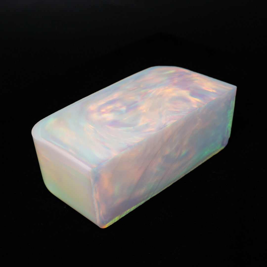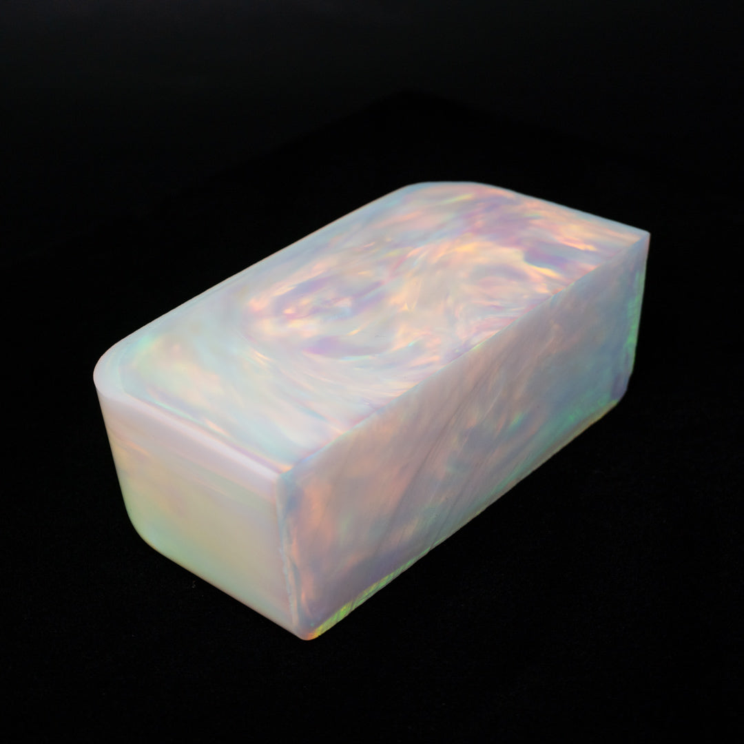 Lab-grown opal provides a brilliant and ethical alternative to mined opal. It offers not only affordability but also enhanced durability for creative projects. Unlike natural opal, which can be prone to cracking or crazing, our opal is stabilized with a polymer. This special impregnation process makes the material much stronger and easier to work with, perfect for jewelry, ring making, and other crafts. Please note, because of this polymer stabilization, the material cannot be exposed to the high heat of activities like glassblowing.